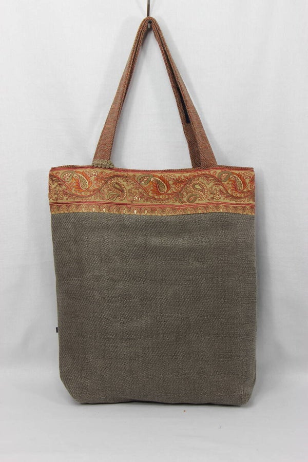Omkeerbare stijlvolle totebag. Apart tasje. Handgeborduurde mooie paisley vintage boord.