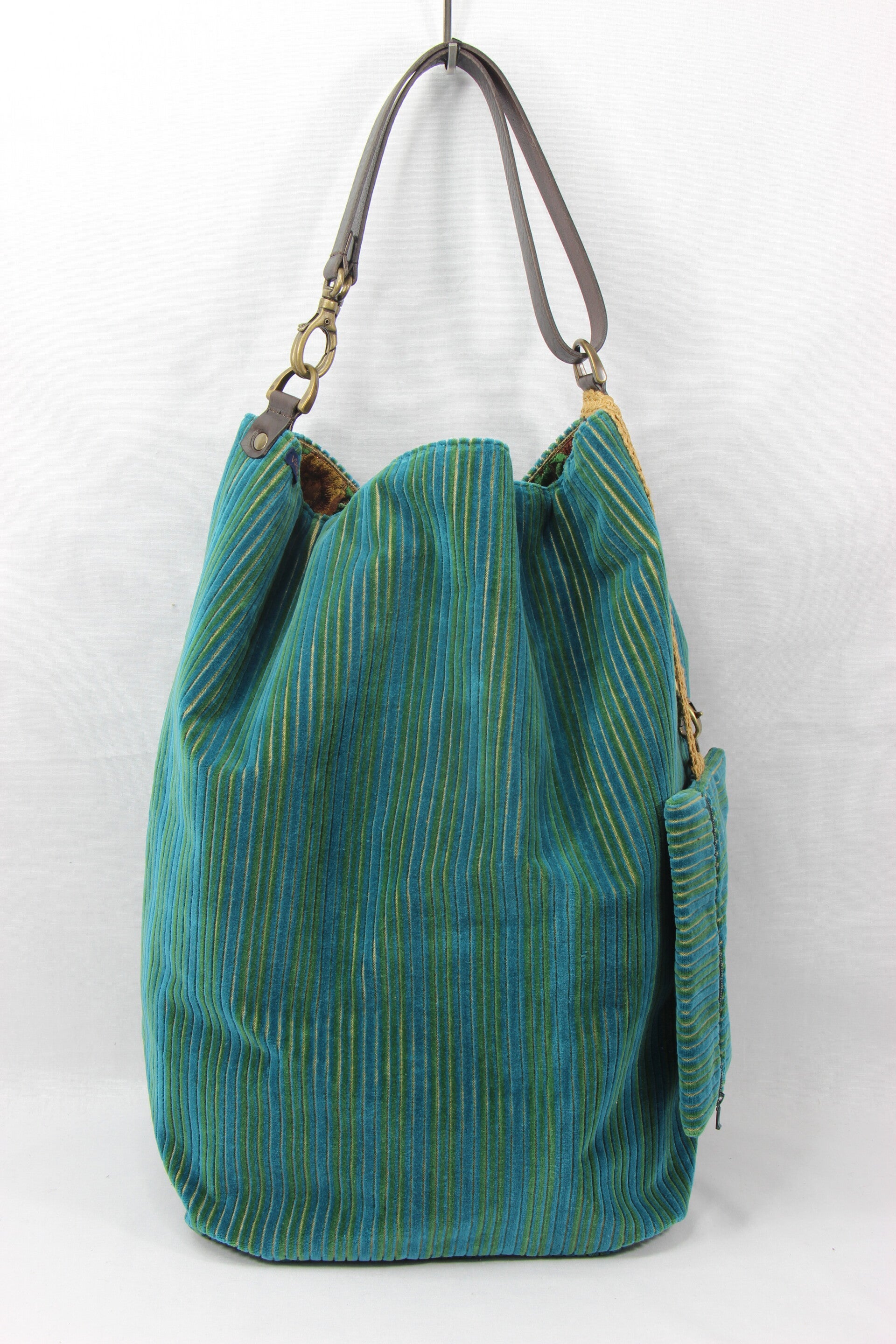 Eén kant in vintage duotoon ribfluweel, andere kant fijne zijde.